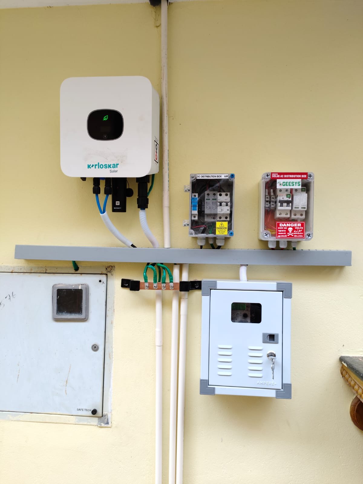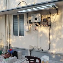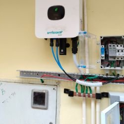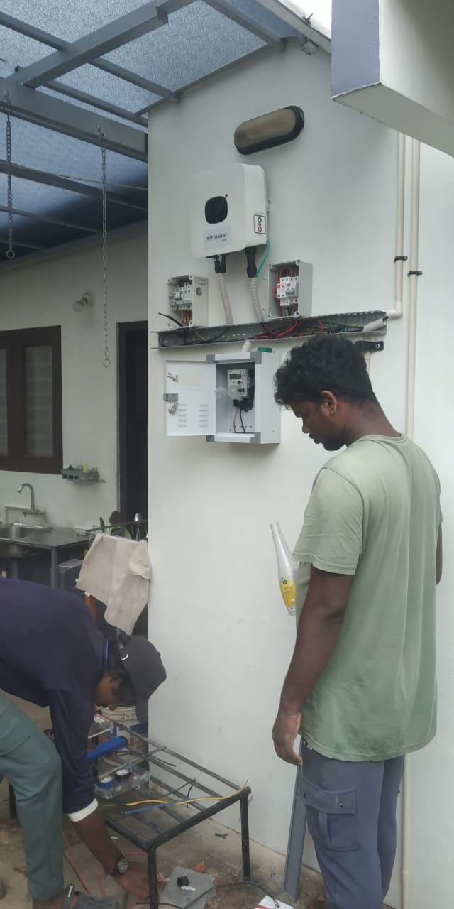 A hybrid solar system works with both solar power and the electricity grid. It also has batteries to store extra energy for later use. During the day, it uses solar energy, and at night or during power cuts, it uses the stored battery power or grid electricity. This system gives you continuous power, helps reduce electricity bills, and provides backup during outages. It combines the best features of on-grid and off-grid systems, making it a smart and flexible choice for homes and businesses.